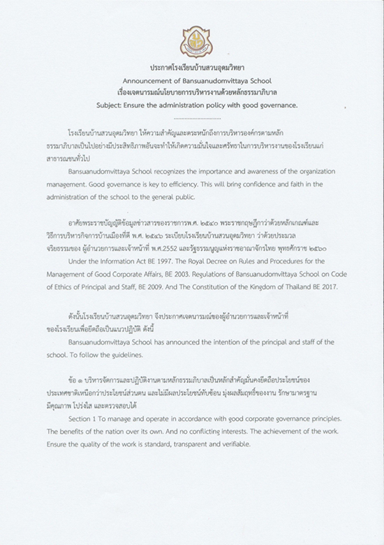 มาตรการส่งเสริมความโปร่งใสและป้องกันการทุจริตภายในสถานศึกษา
